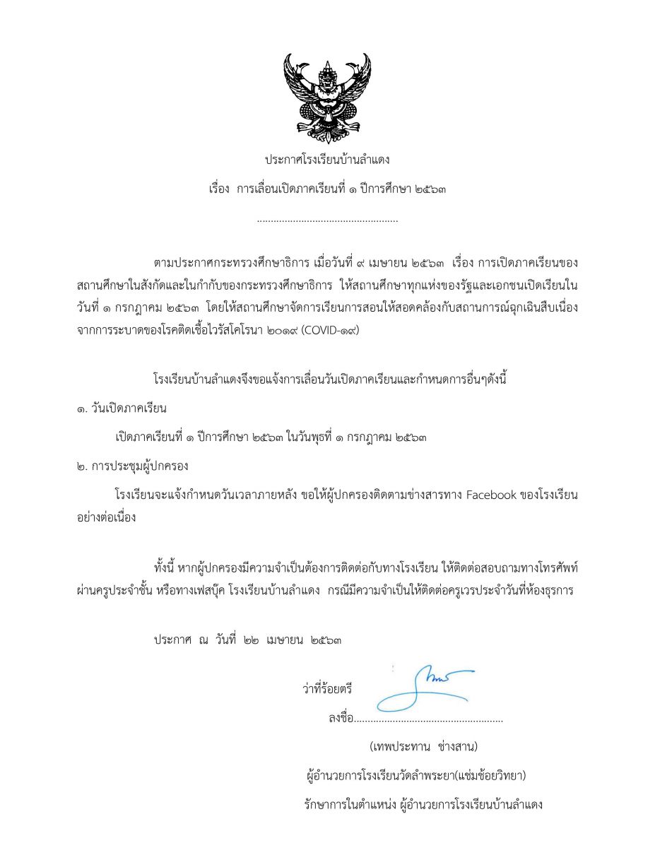 ประกาศเลื่อนการเปิดเทอมภาคเรียนที่ 1 ปีการศึกษา 2563