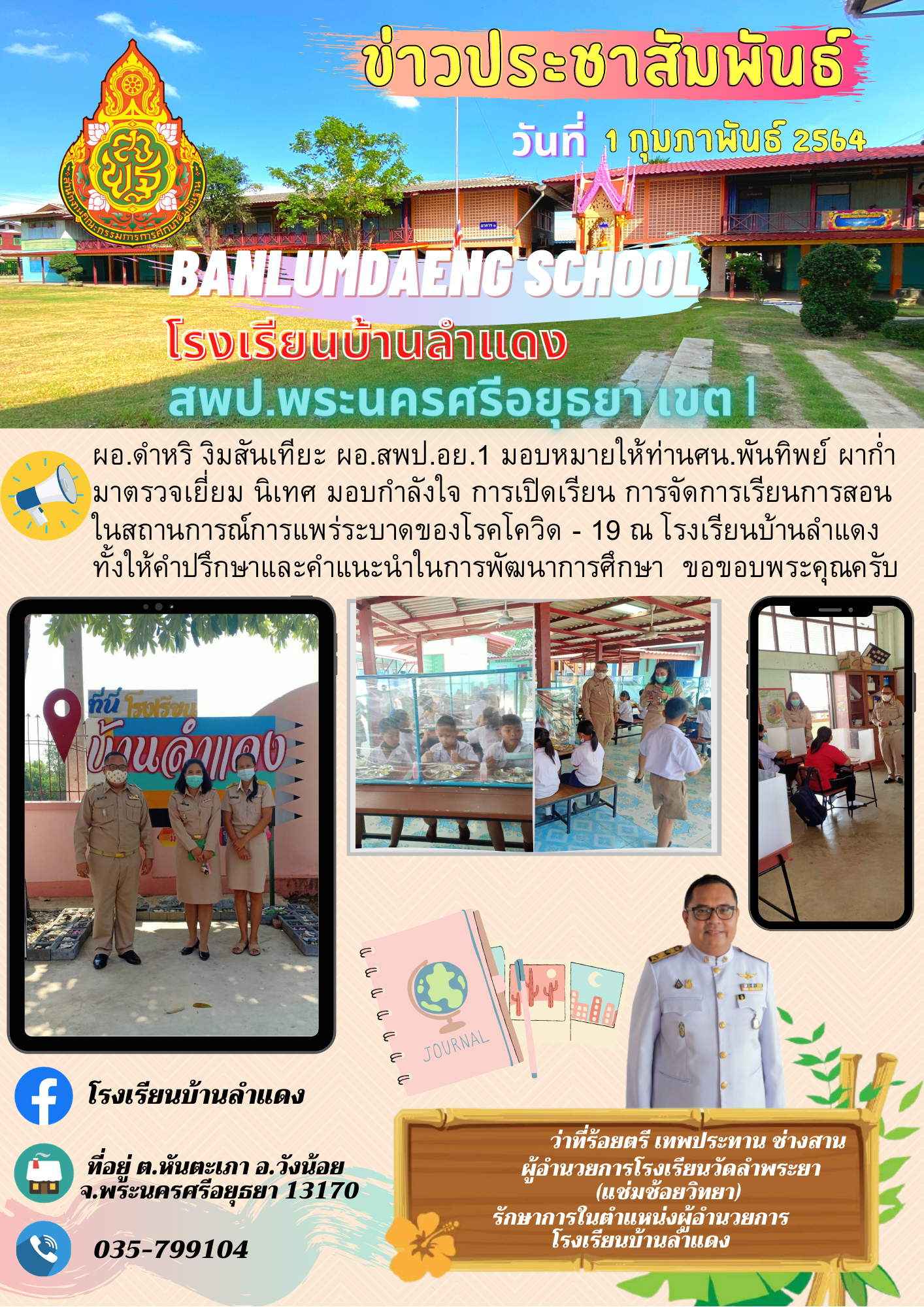 ผอ.ดำหริ งิมสันเทียะ ผอ.สพป.อย.1 มอบหมายให้ ท่าน ศน.พันทิพย์ ผาก่ำ มาตรวจเยี่ยมโรงเรียน
